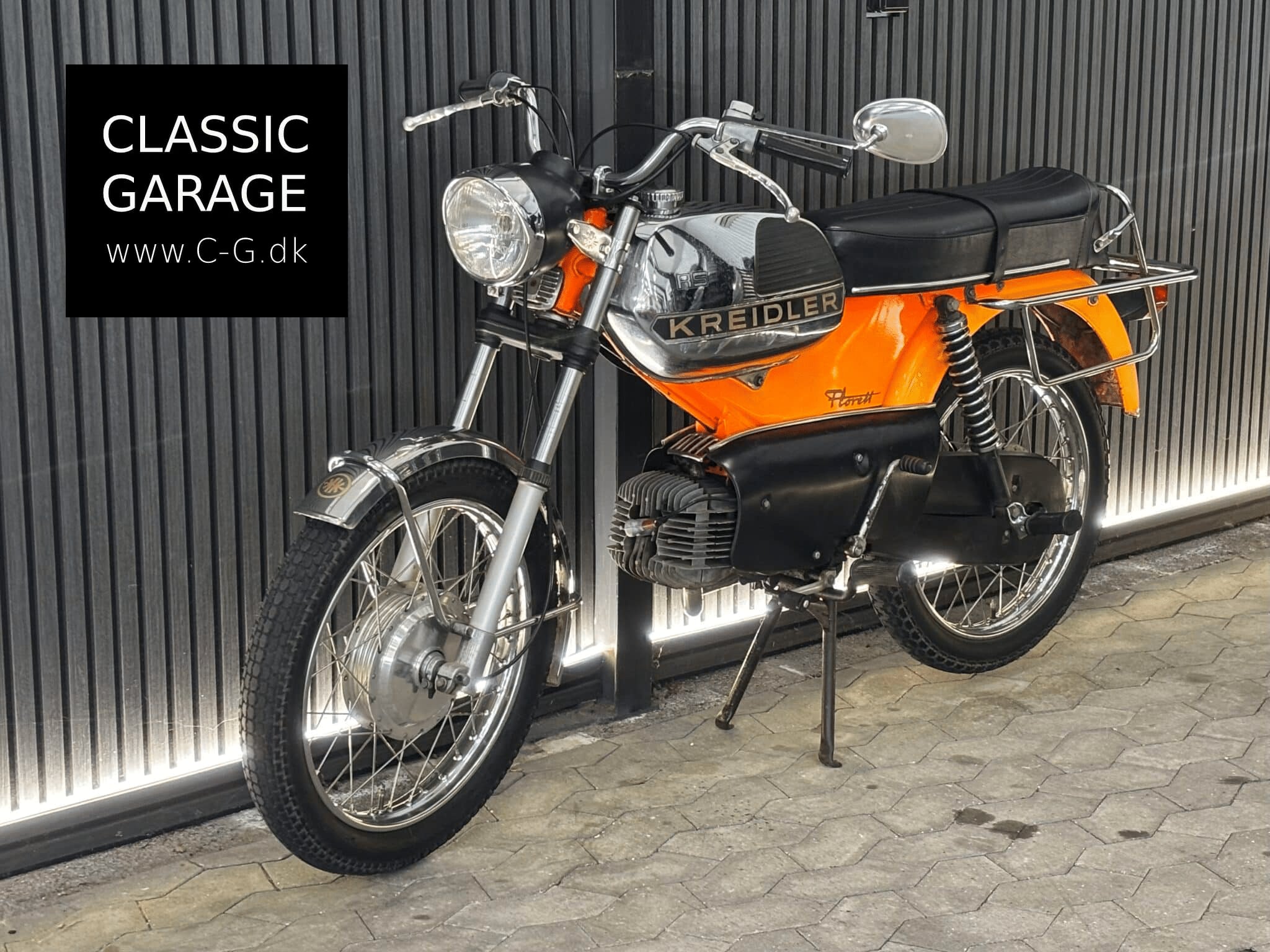 Et sjældent syn generelt og specielt i ligeså orignal stand som denne. En helt og aldeles ægte Kreidler Florett RS med en topfart i dag på hele 38 km/t (målt på GPS). Denne Kreidler er dansk fra ny og har kun kørt 14.000 km fra ny. Kreidler mærket fik i sin tid verdensrekorden på svimlende 210 km/t på 50cc i 1955. Dette er altså muligheden for et stykke knallert historie uden lige. Knallerten her har stel nr. WJA 3094983 M