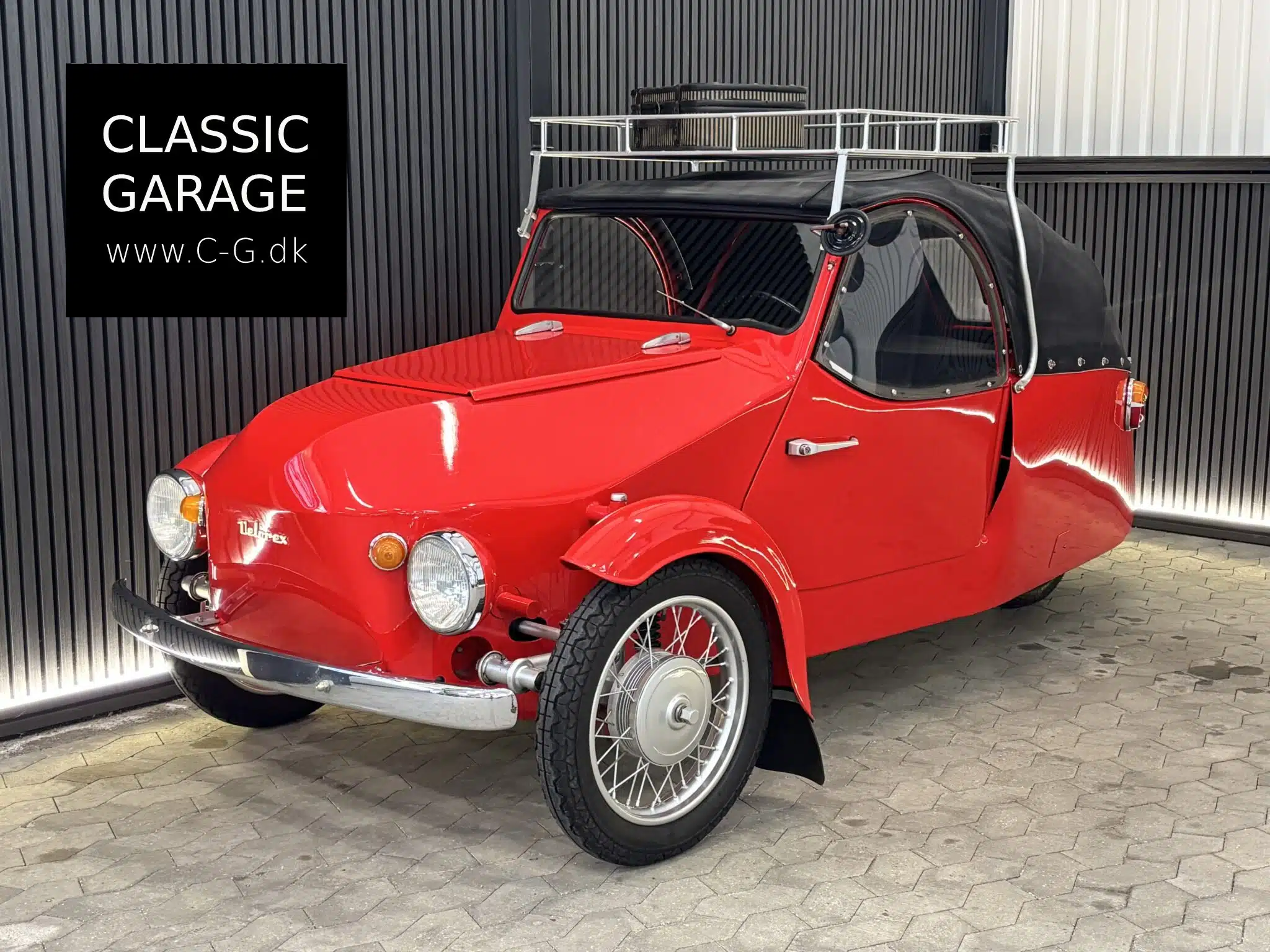 Kender man til en Velorex i det hele taget så kender man den med et fuldt læder eksteriør som de blev lavet med originalt. Denne her er helt særlig og står med stålkarosse og en kaleche. Det skulle efter sigende være den eneste i verden i dette spec og vi har ikke kunne finde nogle lignende endnu!