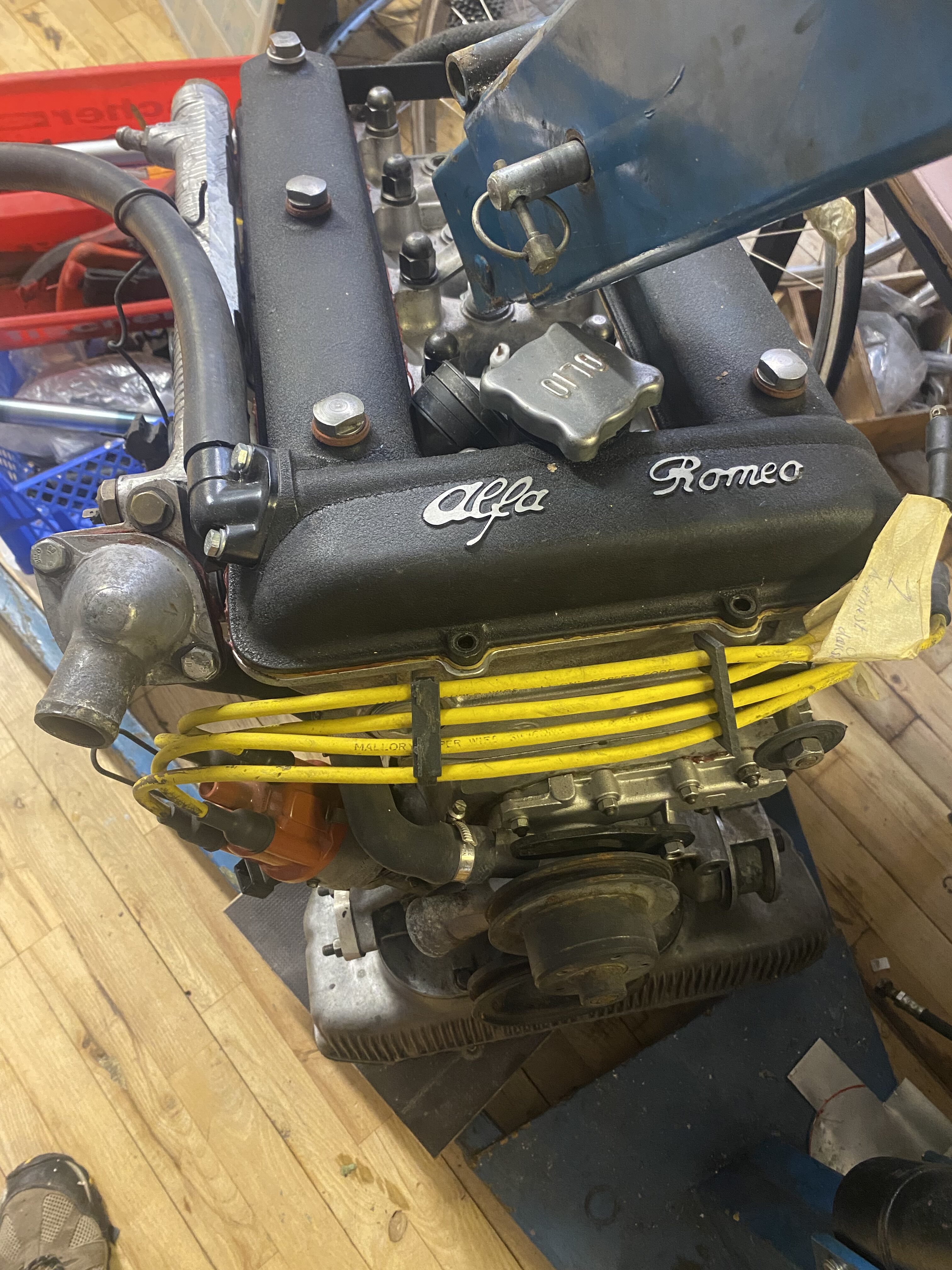 Alfa Romeo GT junior, Trackday bil med bur. Tunet 2.0 motor, Nul rust, pladearbejde lavet af proff. Skal samles. Det hele er der på nær udstødning. Hele undervognen som ny, alt er skiftet eller istandsat. Skal ses. Er født som en 1600 cc. Kommer med svenske papirer. GTA AlfaHolics fælge, nylakeret Alfa rød. HK antal er estimeret