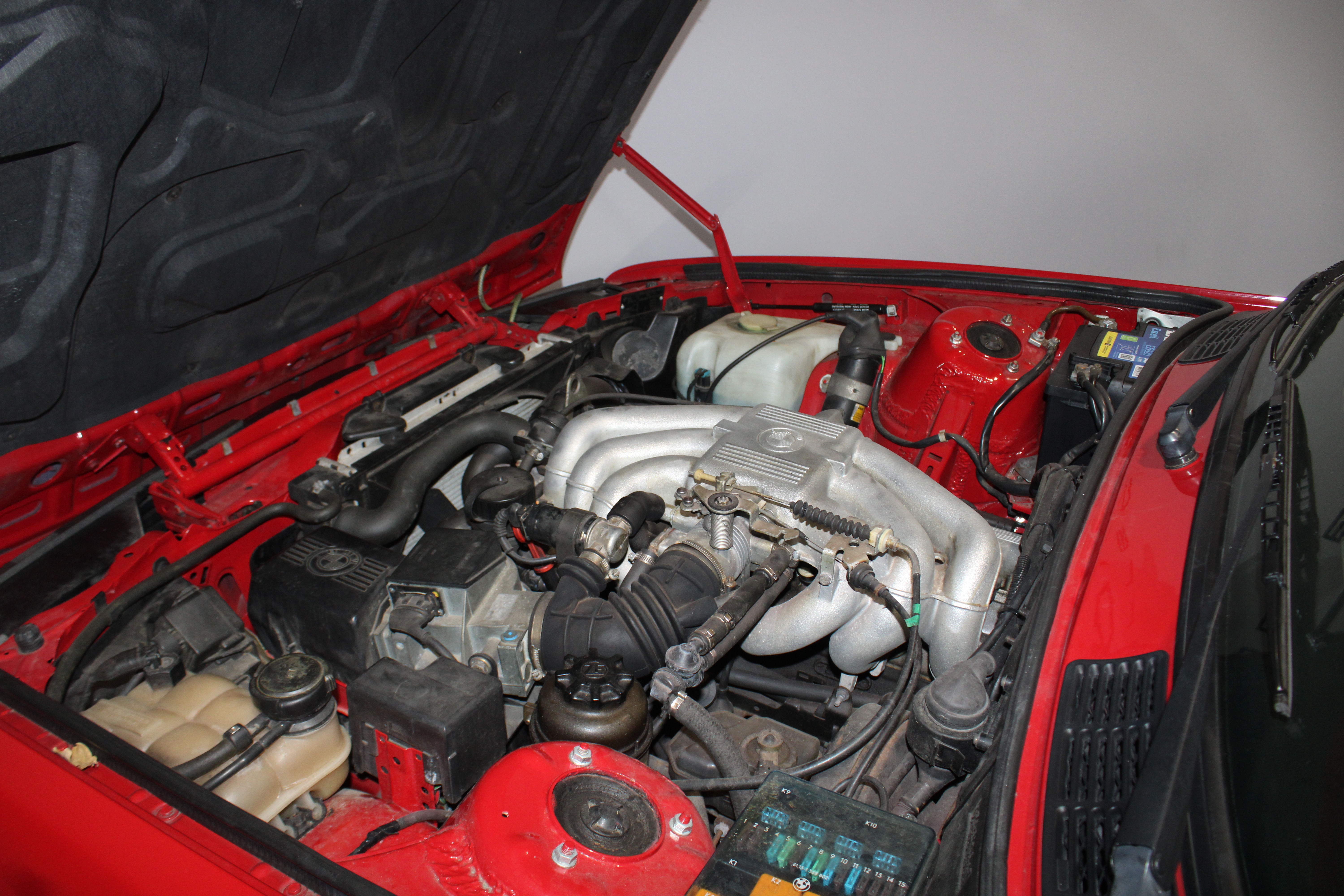 Interiøret i bilen er klassisk og tidsløst BMW med det let vinklede instrumentbord mod føreren, det tidstypiske ur sæt, den 5-trins manuelle gearkasse med bakgearet oppe til venstre der på midterkonsollen er flankeret de firkantede knapper til el-ruderne