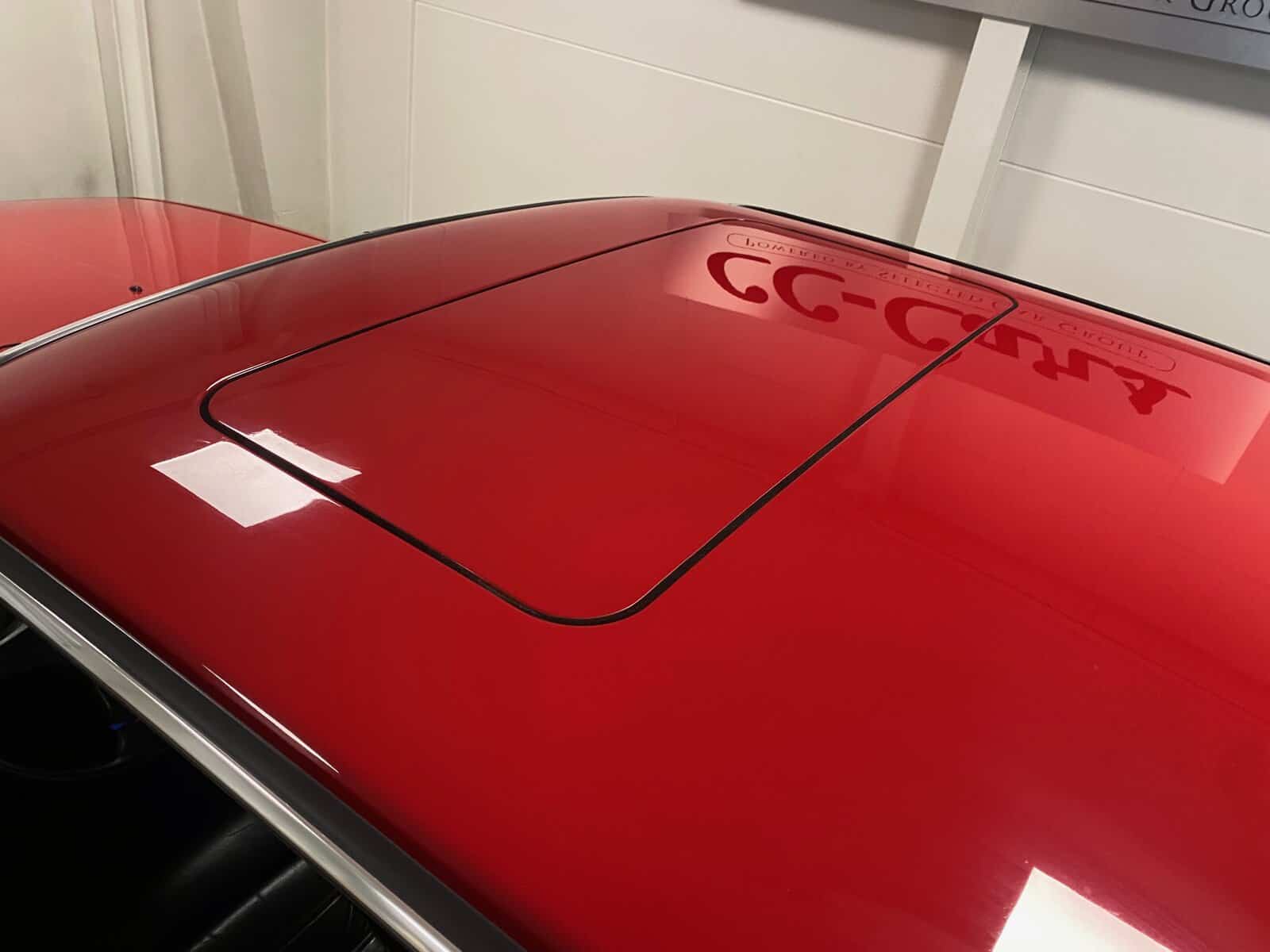 Bilen fremstår i særdeles velholdt stand udvendigt som indvendigt, og leveres i den flotte røde originale farve S138 Zinnober-Rot med sorte lækre lædersæder.