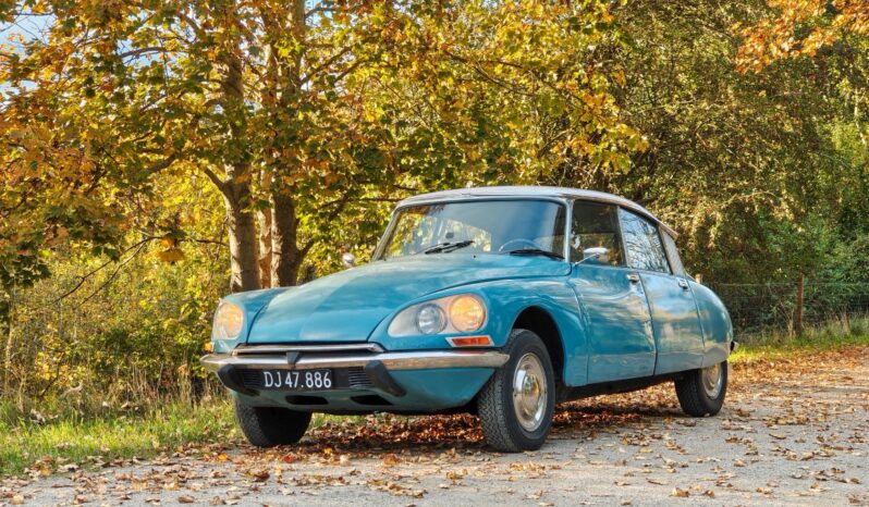 Citroën DSpecial fra 1974 må med tungt hjerte desværre sættes til salg, lakeret i den smukke “Bleu Lagune” farve, som sammen med det hvide tag giver bilen et skønt look.