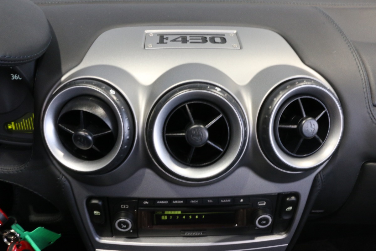 Den fremstår utrolig flot inde og ude - fælge er lidt blevet renoveret og der er ingen "sticky buttons", så der er virkelig tale om en fin F430 Spider, som tilmed kommer med fuld Ferrari servicebog, værktøjssæt osv:
