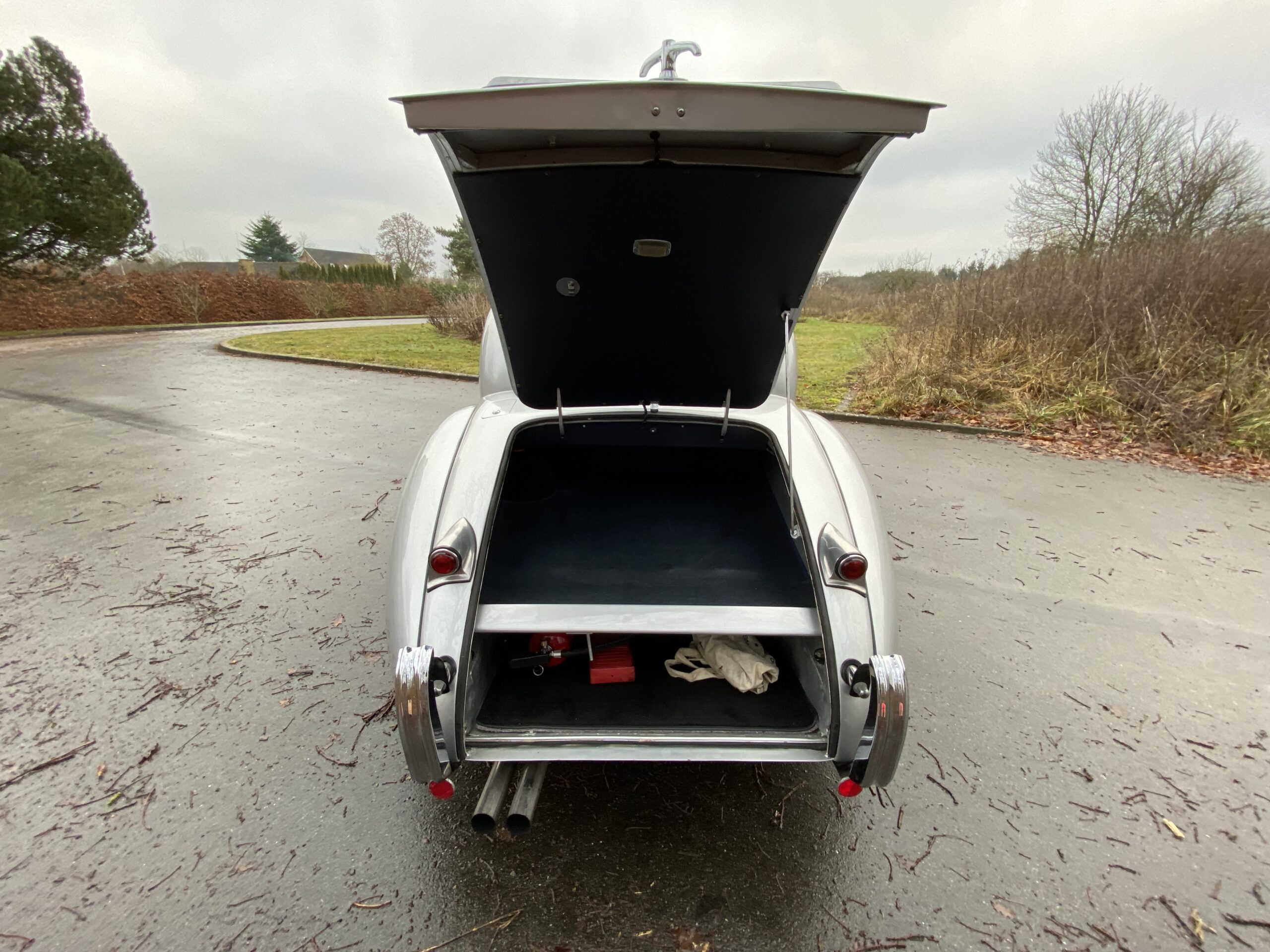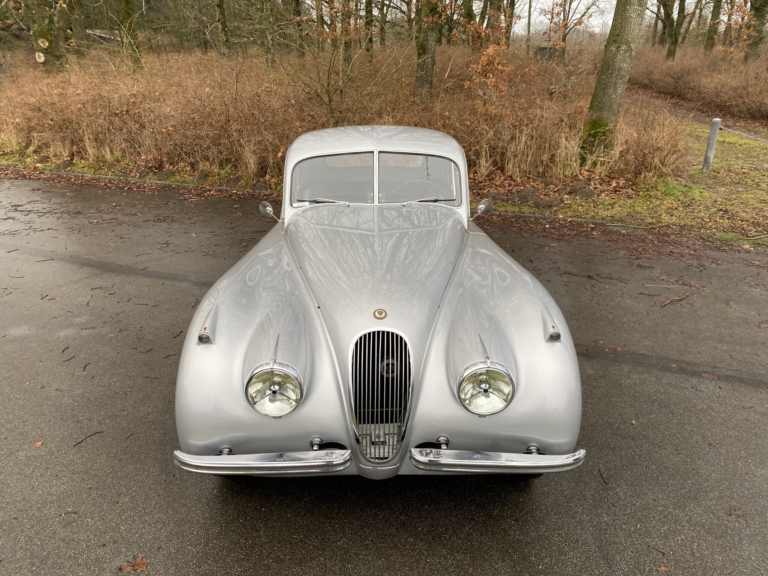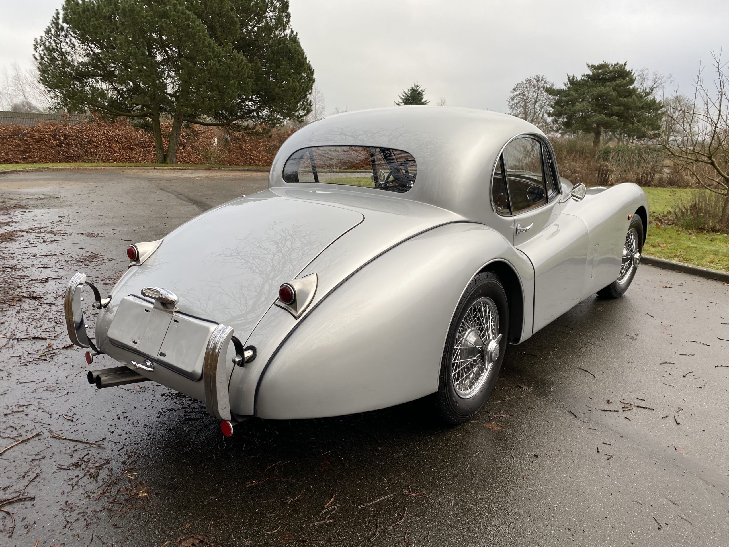 Jaguar XK120 Fixed-Head Coupe (2672 produceret) i Birch Grey, sort læderinteriør og 03993 miles på kilometertælleren. Oprindeligt solgt i USA som ny. Bilen har den originale 3,4-liters sekscylindrede motor med dobbelt overliggende knastaksel, der yder 160 hestekræfter.