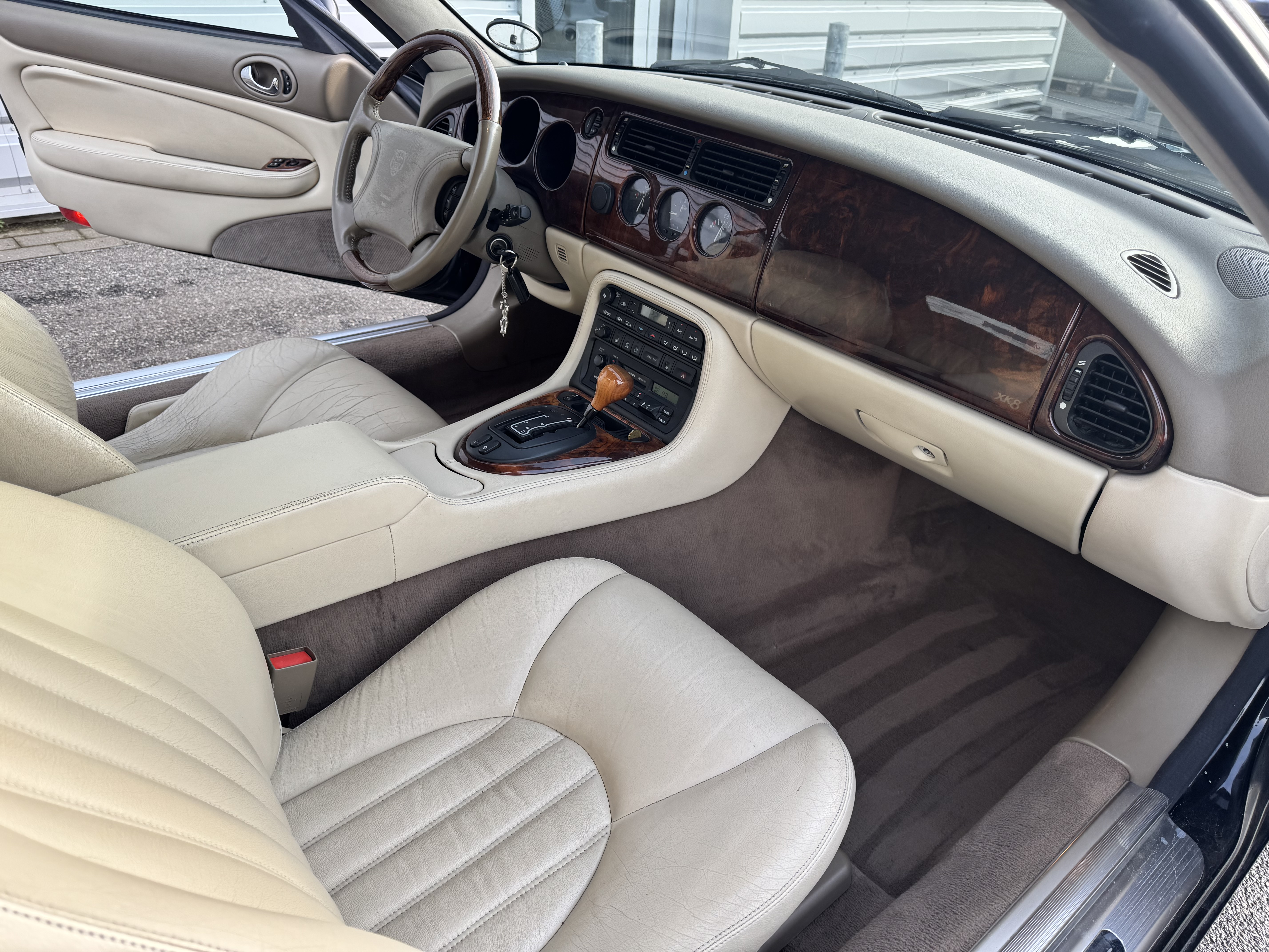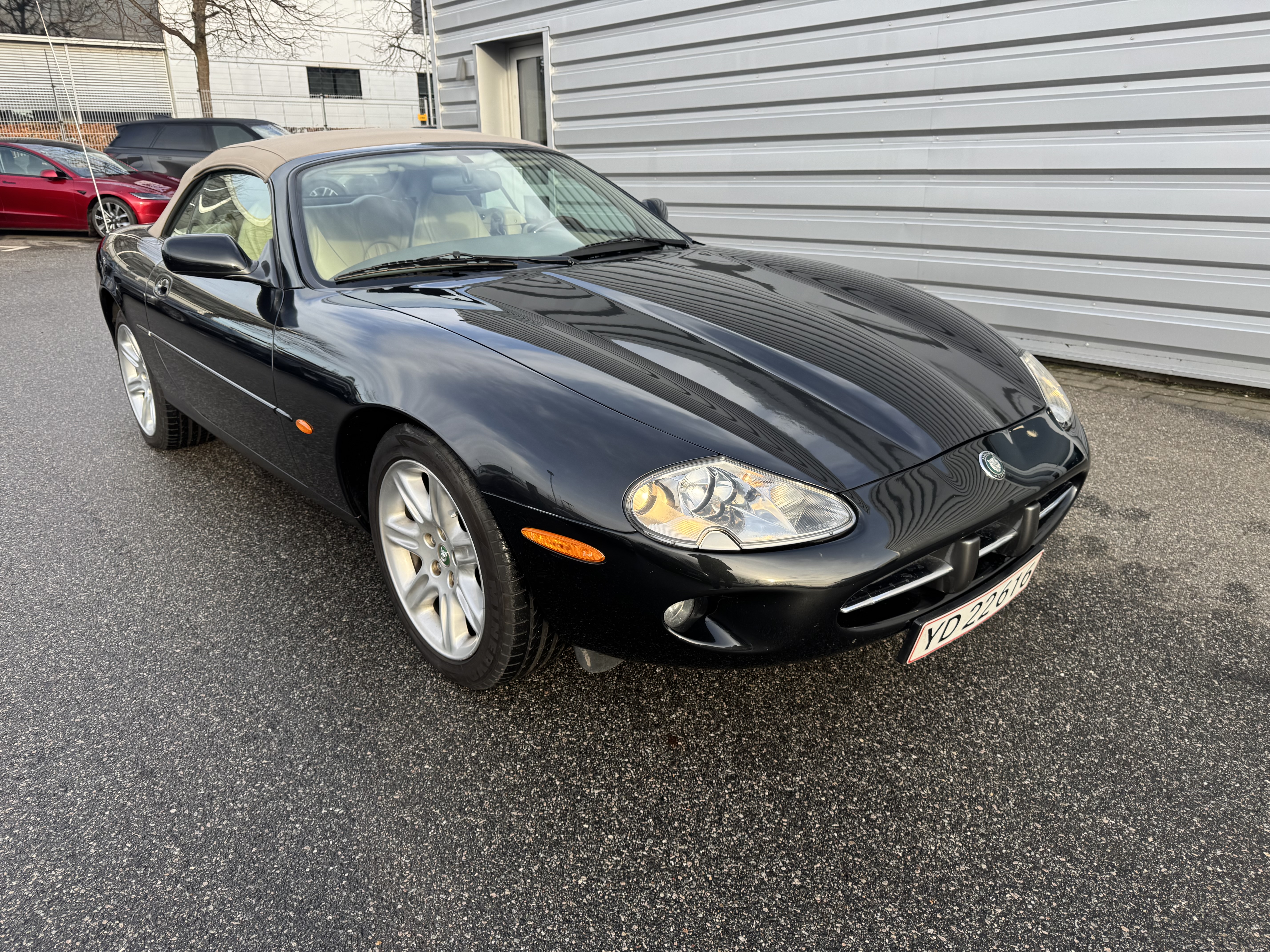 Rigtig fin Jaguar XK V8 cabriolet, ny serviceret hos British Motorgroup og nysynet. I forbindelse med syn blev nederste bærekugler samt støddæmper bøsninger skiftet. Bilen er undervognsbehandlet og fremtræder pæn med mindre kosmetiske fejl. Taget er pænt og fungerer uden problemer. Der medfølger windbreaker samt læder dækken til taget når det er nede. Bilen er på FULD afgift