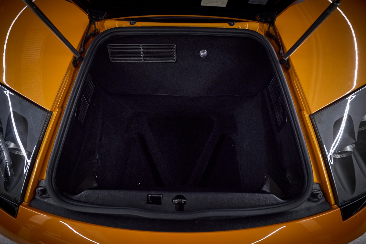 Præsenteret her er et virkeligt exceptionelt eksempel på Lamborghini Murciélago 6.2 V12 med manuelt gearkasse, lakeret i den ikoniske originale lanceringfarve orange, som set ved modellens verdenspremiere. Denne specifikation – naturligt aspireret V12, manuel transmission og konfiguration fra lanceringæraen – repræsenterer den reneste og mest eftertragtede udgave af Murciélagoen. Som den første V12 Lamborghini udviklet under Audis ejerskab forener Murciélagoen forbedret bygningskvalitet med den umiskendelige drama, aggression og følelsesmæssighed, der definerer mærket. I dag står den som en af de sidste ægte analoge Lamborghini-superbiler.
