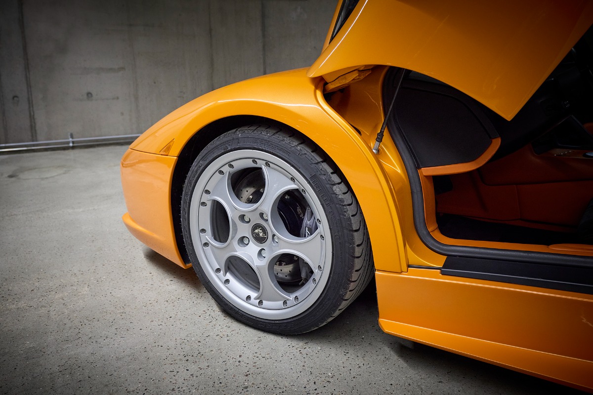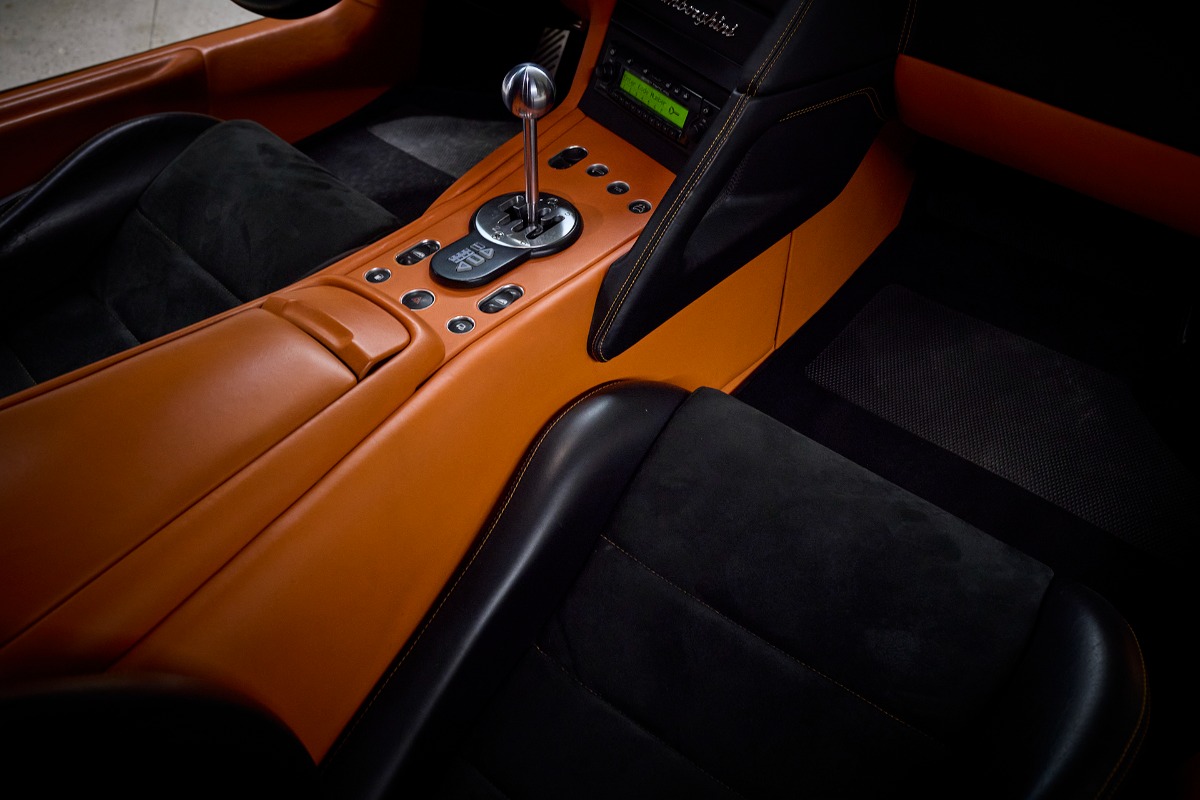 Bilen er lakeret i orange, den berømte lanceringfarve, som Lamborghini brugte under Murciélagoens originale præsentation. Denne farve fremhæver perfekt bilens dramatiske linjer og understreger yderligere dens historiske betydning og samlingsværdi.