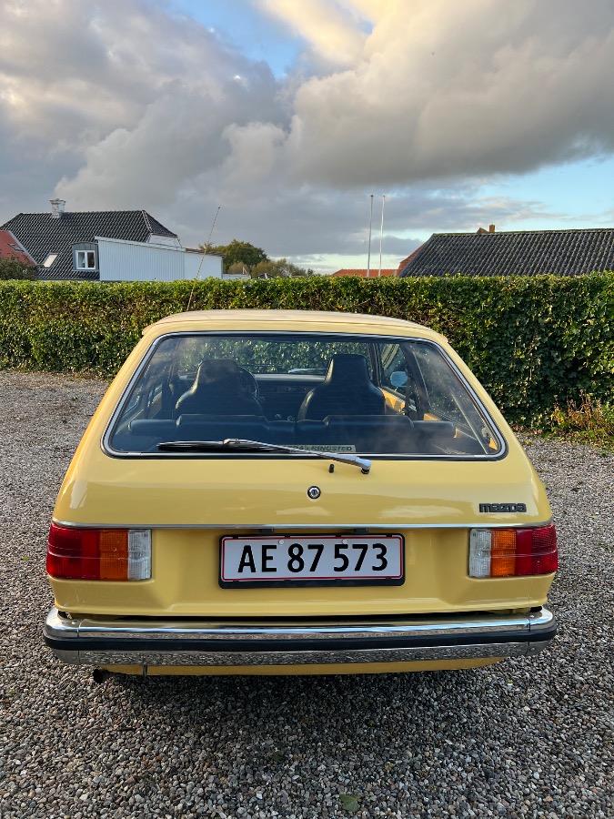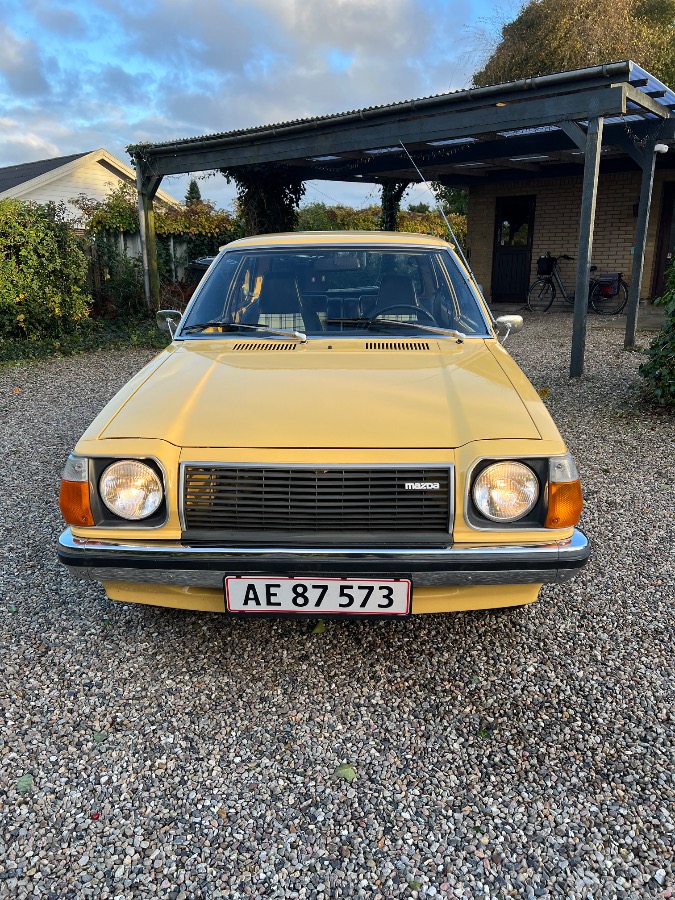 Denne Mazda 323 fra 1978 står flot og original – perfekt til samleren eller dig, der vil have noget unikt til træf og sommercruising.