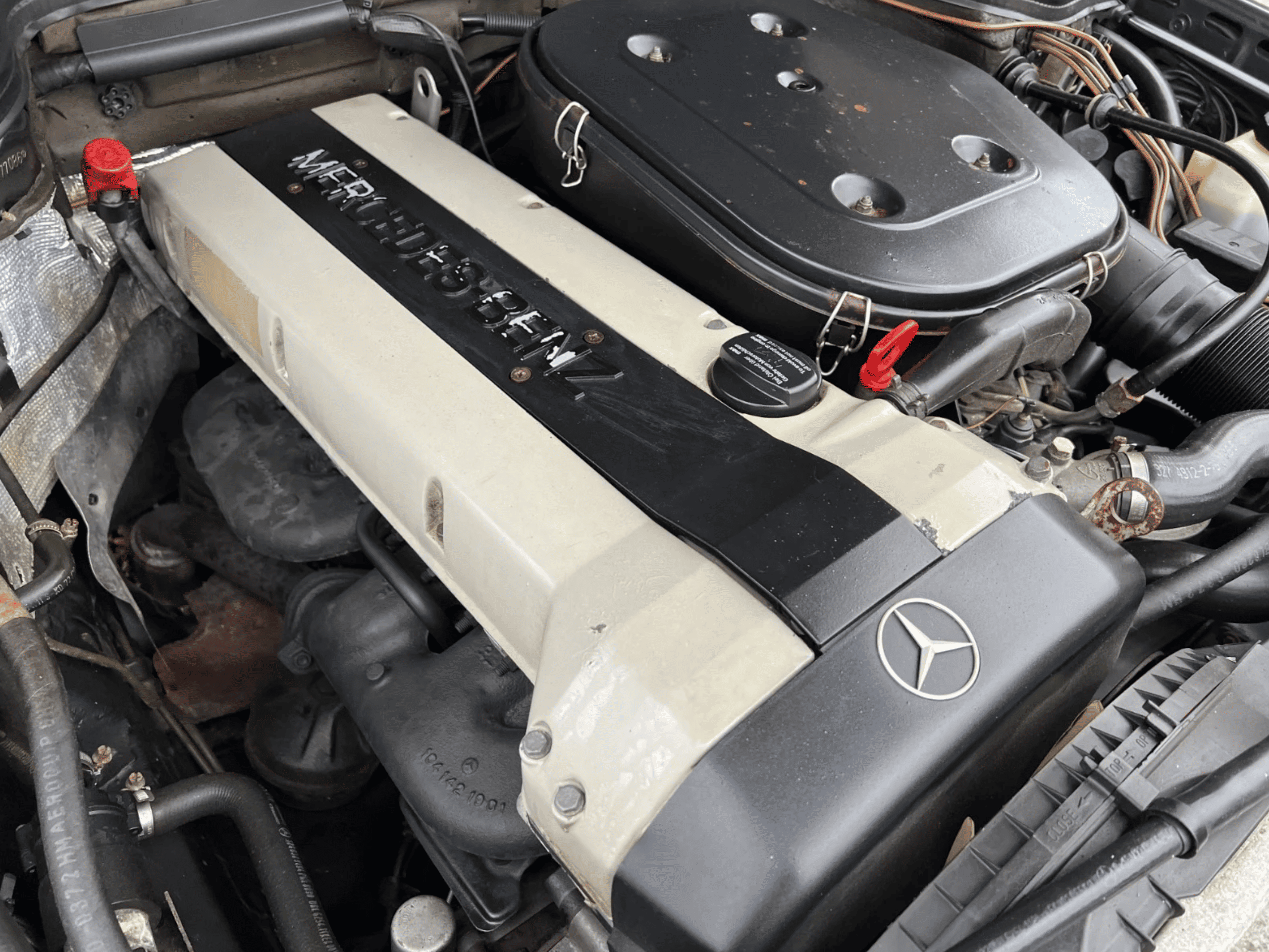 SUPER fin Mercedes 300CE 3,0 24V Cabriolet type 124 6-cyl. 220 hk. Aut.gear, el-kaleche, ægte læder indtræk, el-ruder, centrallås, servostyring, nyt læderrat, alu.fælge, m.m. Veteransynet i 2025, holder syn til 2033 og er på danske plader. Her får man en lækker og velkørende Mercedes Cabriolet med plads til 4-personer og en herlig lyd fra den store 6-cyl. motor.