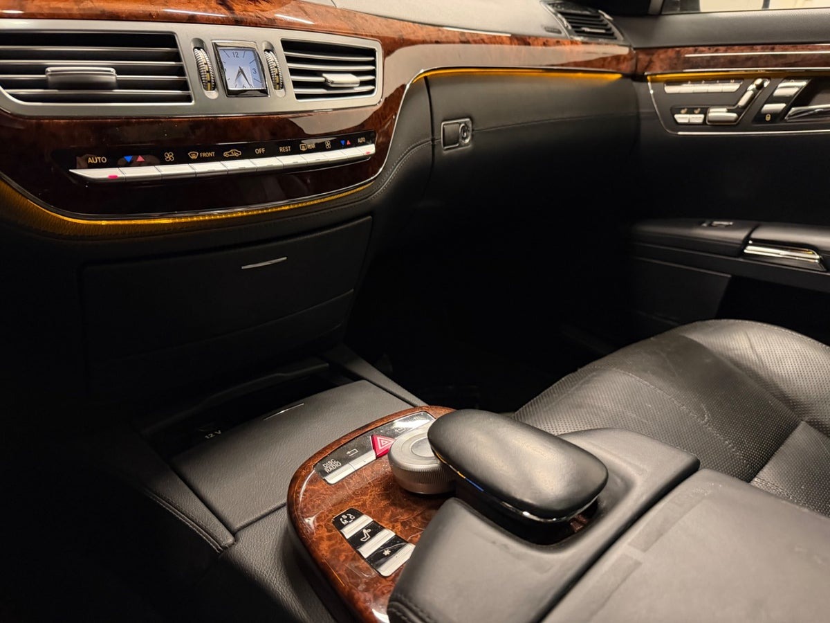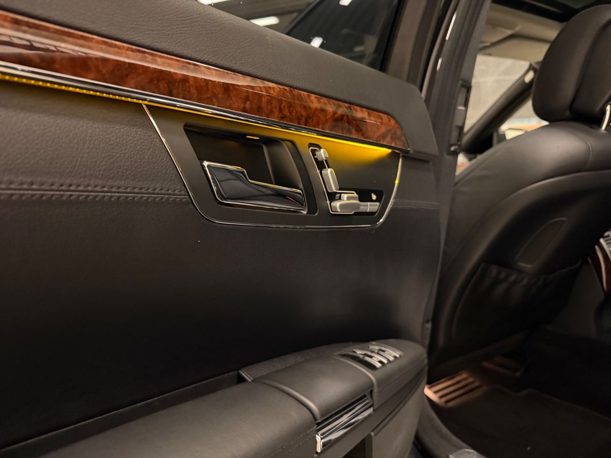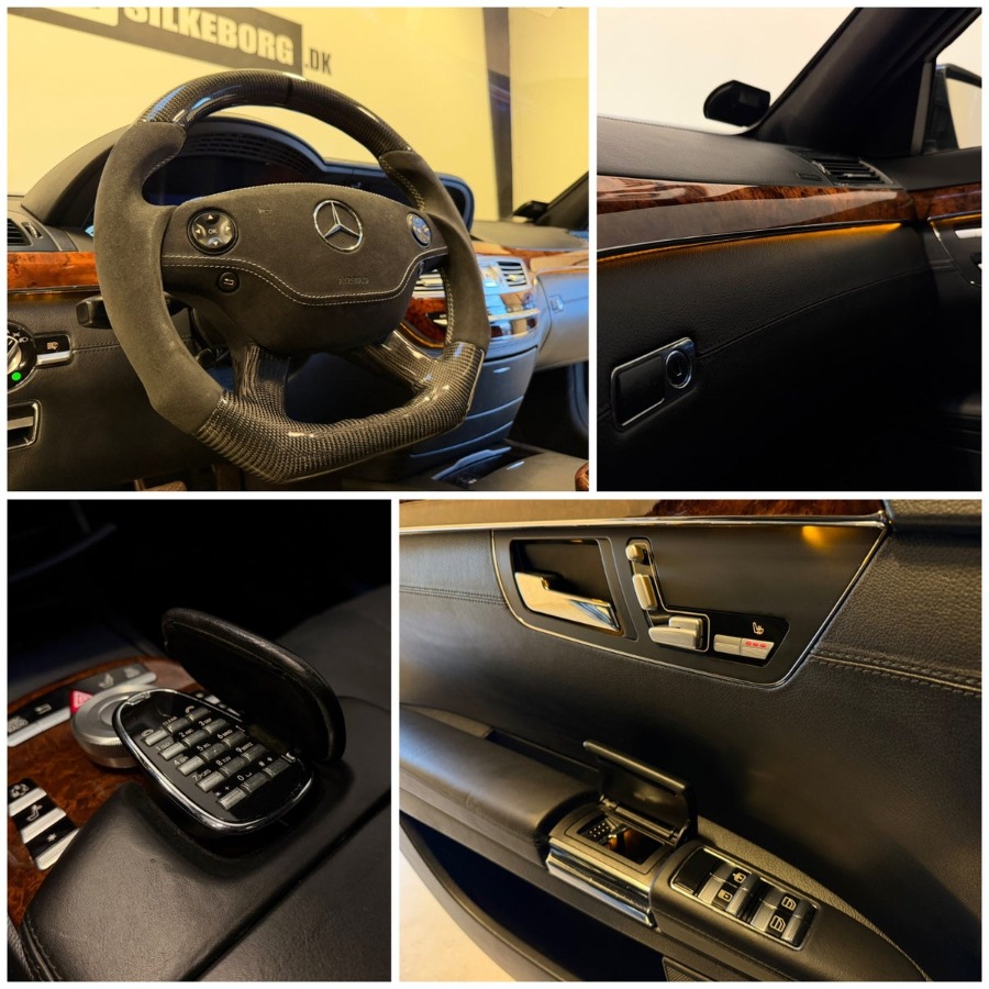 Dobbelt-lamineret ruder, lang model med Chauffør- og Executive bagsæde pakke, hvor højre bagsæde er indrettet som VIP-plads. Her kan bagsædepassageren køre forsædet frem elektrisk fra bagsædet for ekstra benplads, bi-xenon m. kurvelys, analog ur, læderbetrukket instrumentbord, bagsæderne er fuld el-justerbare ortopædiske luksussæder med udvidet tilbagelæning og sædevarme, ambiente belysning, DVD & TV-tuner, interiørlister i højglanslakeret asketræ, 2 zone klima, make-up spejl i bag, carbon/alcantara multifunktionsrat, læderindtræk, 7-trins automatgear, 20'' alufælge, el-klapbare sidespejle, mørktonede ruder i bag, cd/radio, parkeringssensor for/bag, lygtevasker, opgraderet baglygter, opgraderet AMG forkofanger, Fremtræder yderst pæn og velholdt - løbende vedligeholdt - sidst serviceret v. 182.000km