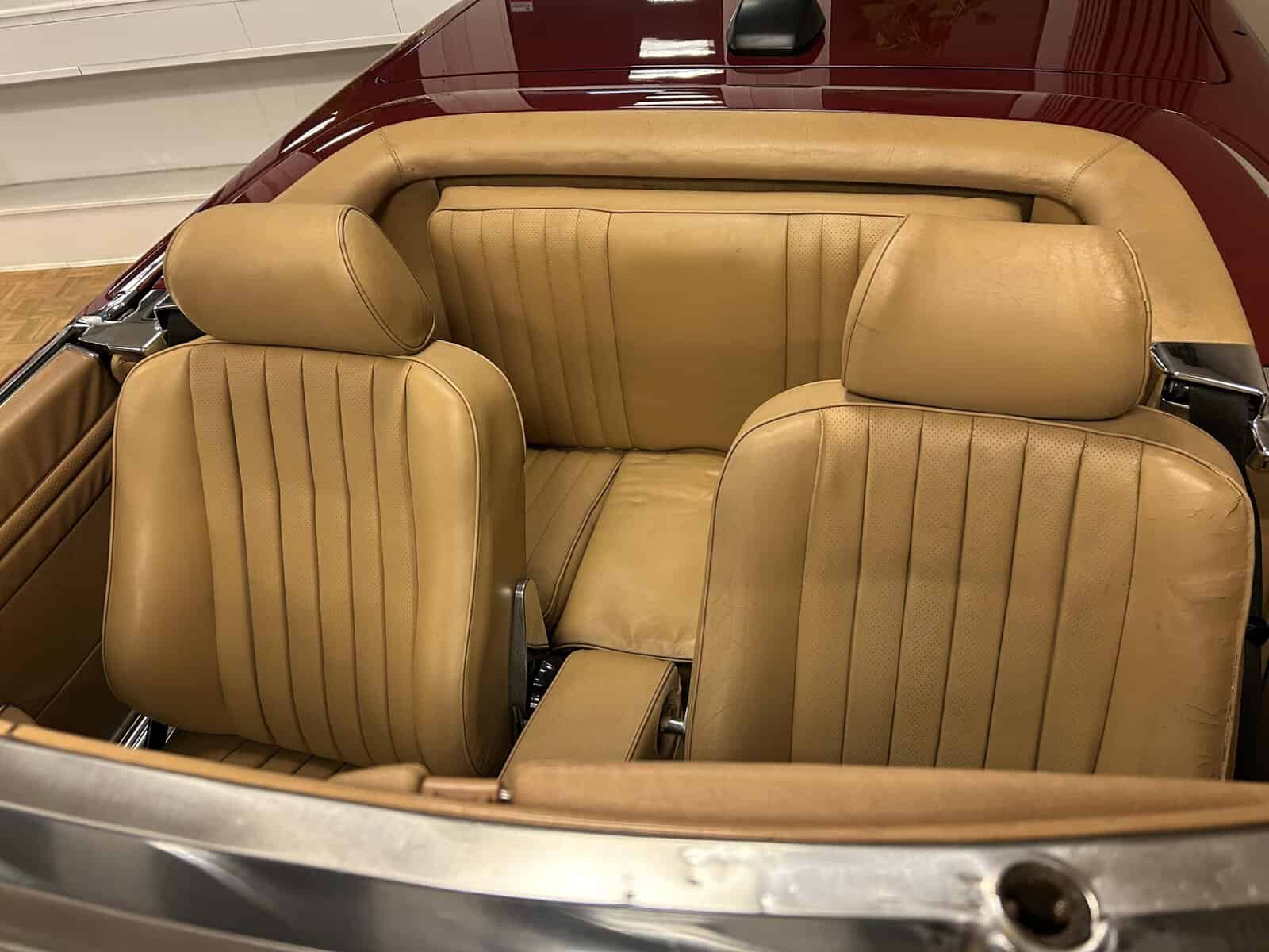 The car is finished in the classic and rare Barolo Red (color code 540), combined with Palomino leather (interior code 274) – a correct, period-typical, and highly sought-after color combination among R107 enthusiasts.