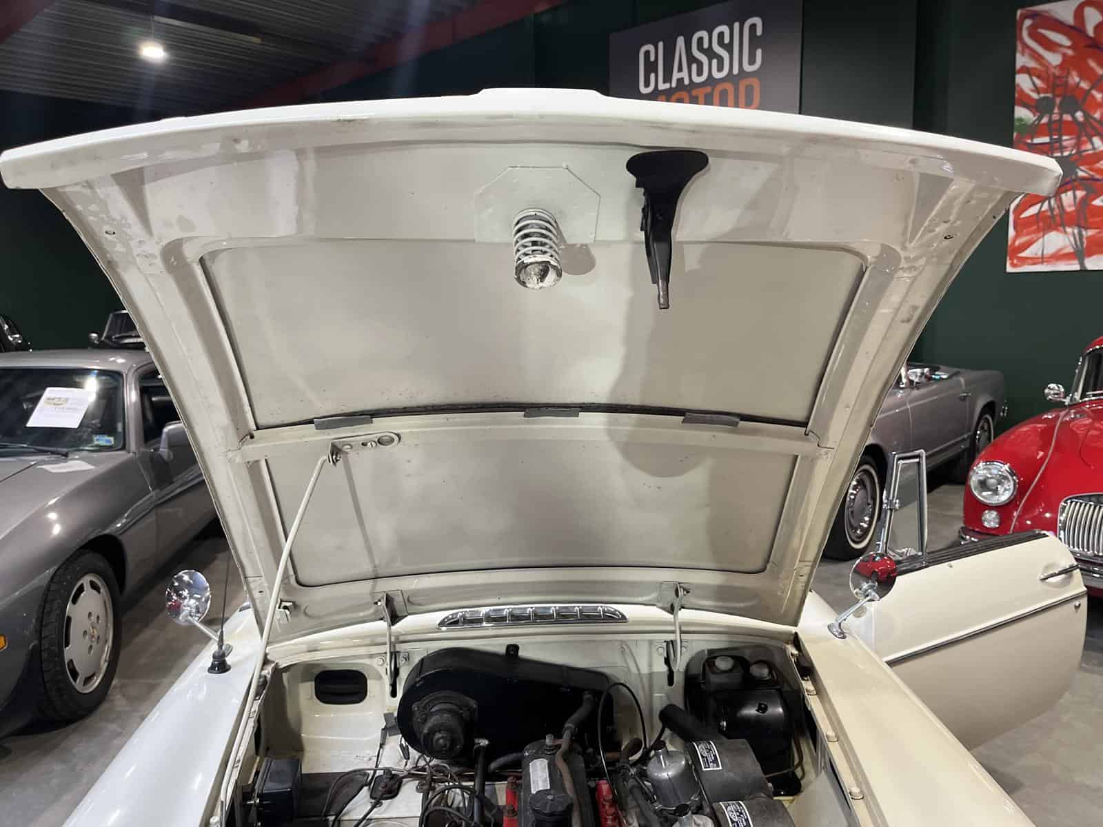 Kabinen er i god stand med pæne sæder, tæppesæt og et generelt velholdt interiør, som matcher bilens klassiske udtryk.