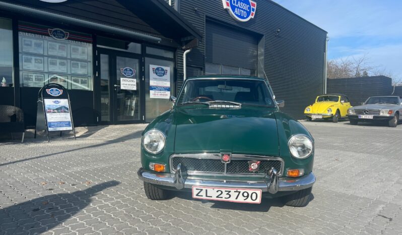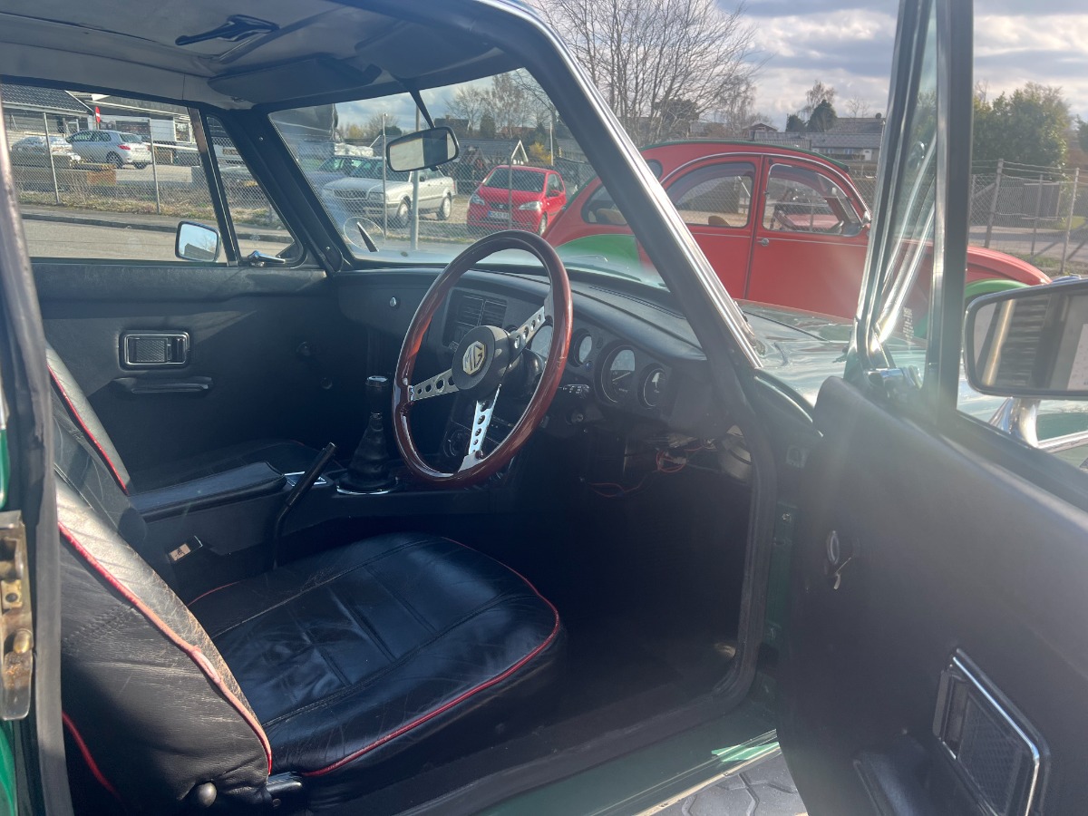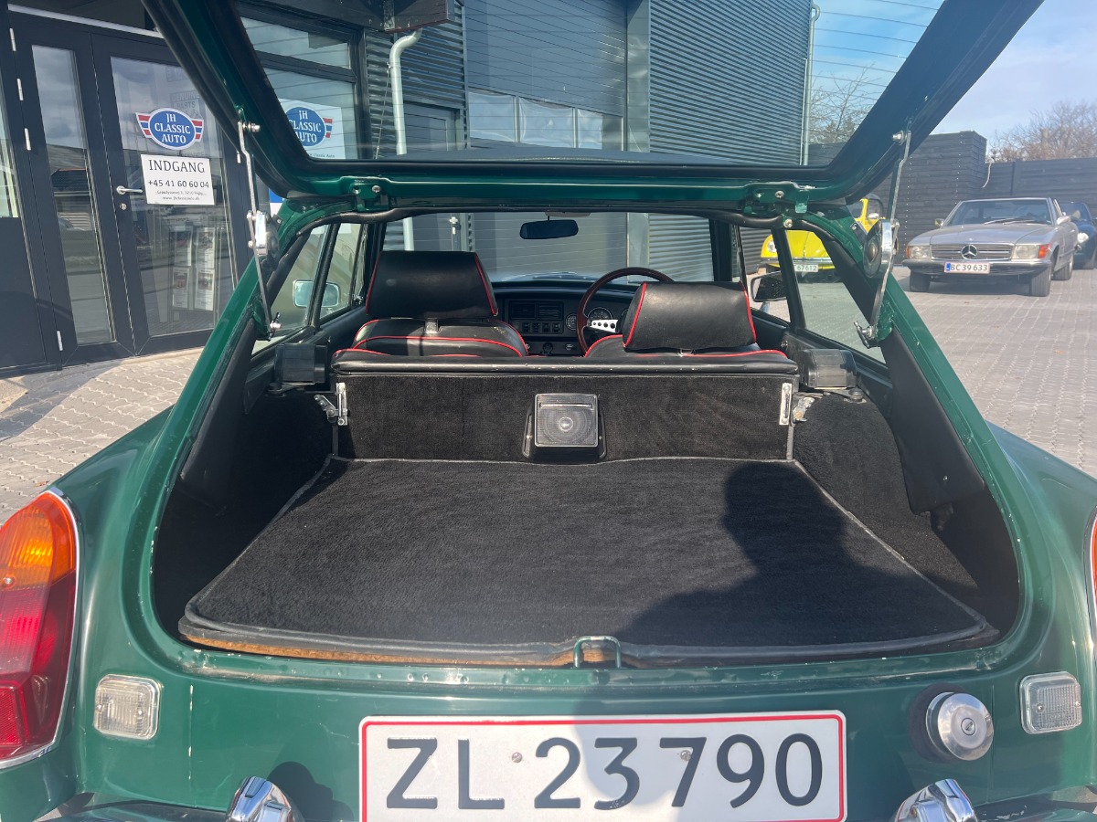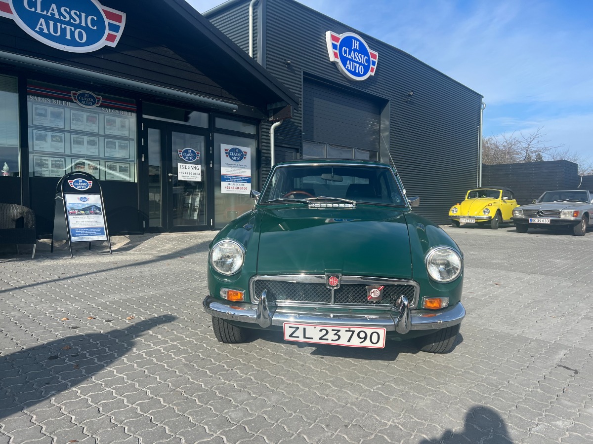 Riogtig fin lille MG B GT Veteranbil årgang 1972 Racing Green med overgiver