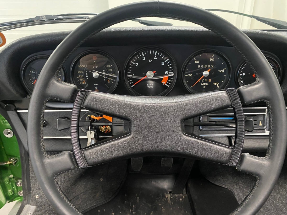 Hermed udbydes udbydes en meget smuk og sjælden Porsche 911 E 2.4 Targa 'Oilklappe' til salg i farven (Grünmetallic farvekode 224)