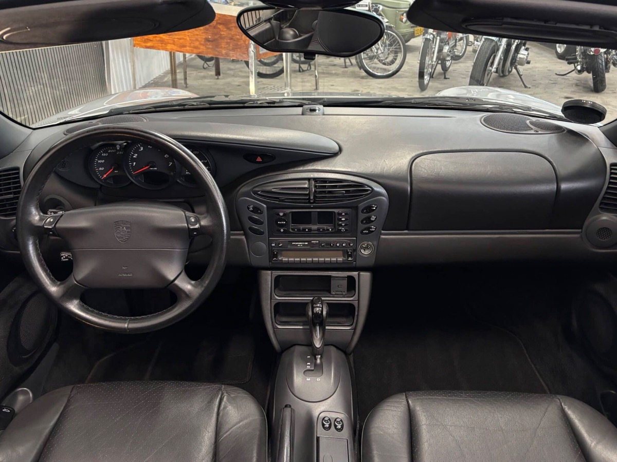 Meget velkørende Porsche Boxster i et fedt spec og 100% fed gokart fornemmelse. Bilen står på et sæt ultra flotte fælge der fuldender det sprøde sølv/sort look. Udstyret med en Tiptronic gearkasse der gør denne bil utrolig letkørt, sjov og samtidig behagelig.