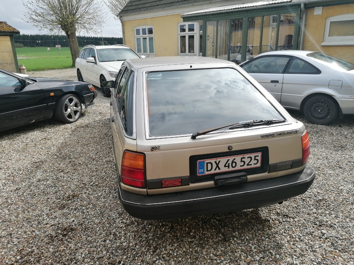 Toyota Carina II Liftback 1.6 ´85. 180.xxx km. Synet 23/10-2023, så ca. 5½ år til syn med nummerplader på.