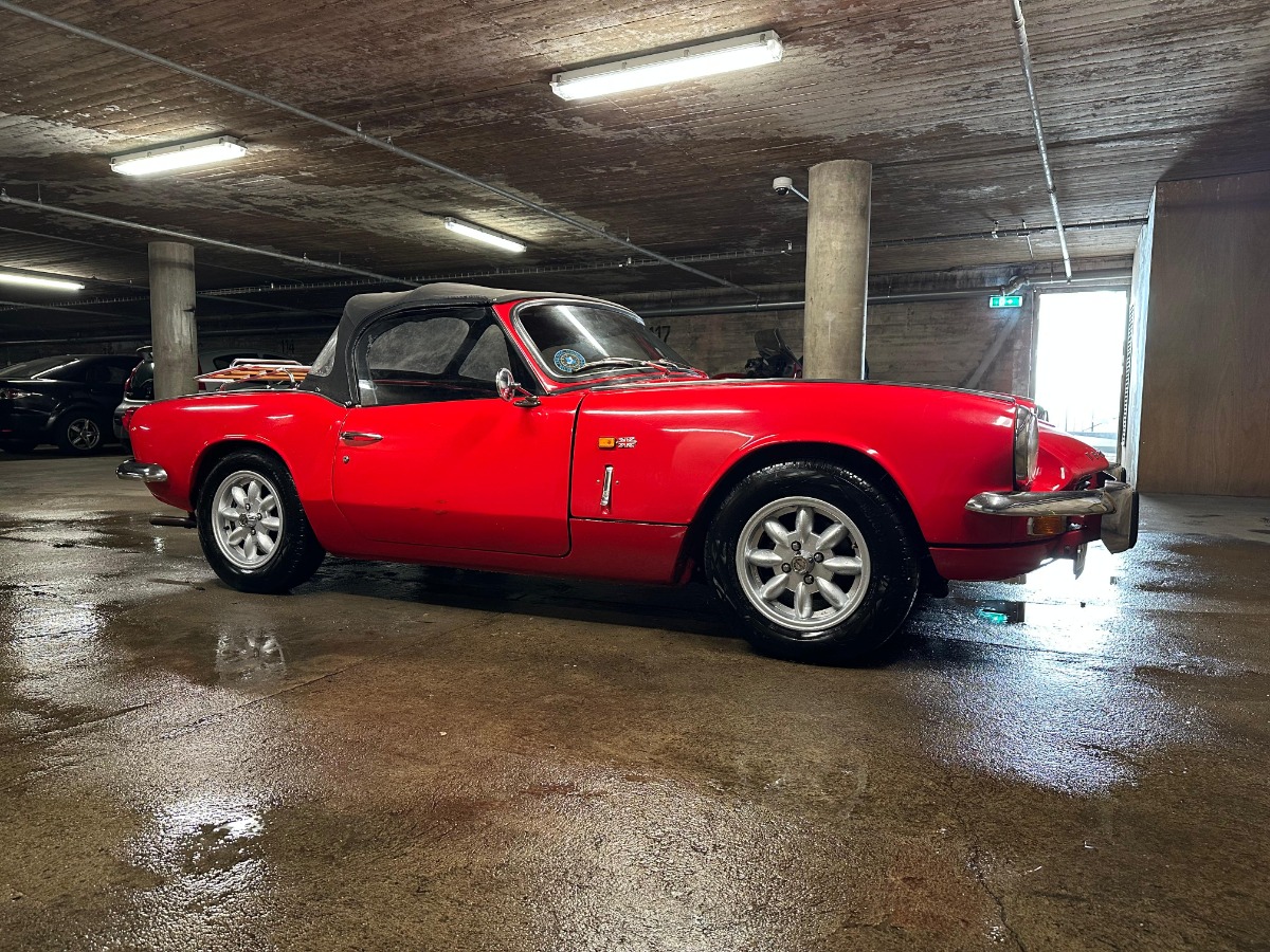 Triumph spitfire mk 3 fra 1969. Bilen har en genopbygget motor og karburatorer, udskiftet ledningsnet, udskiftet slanger til kølesystem, nye tæpper mm.