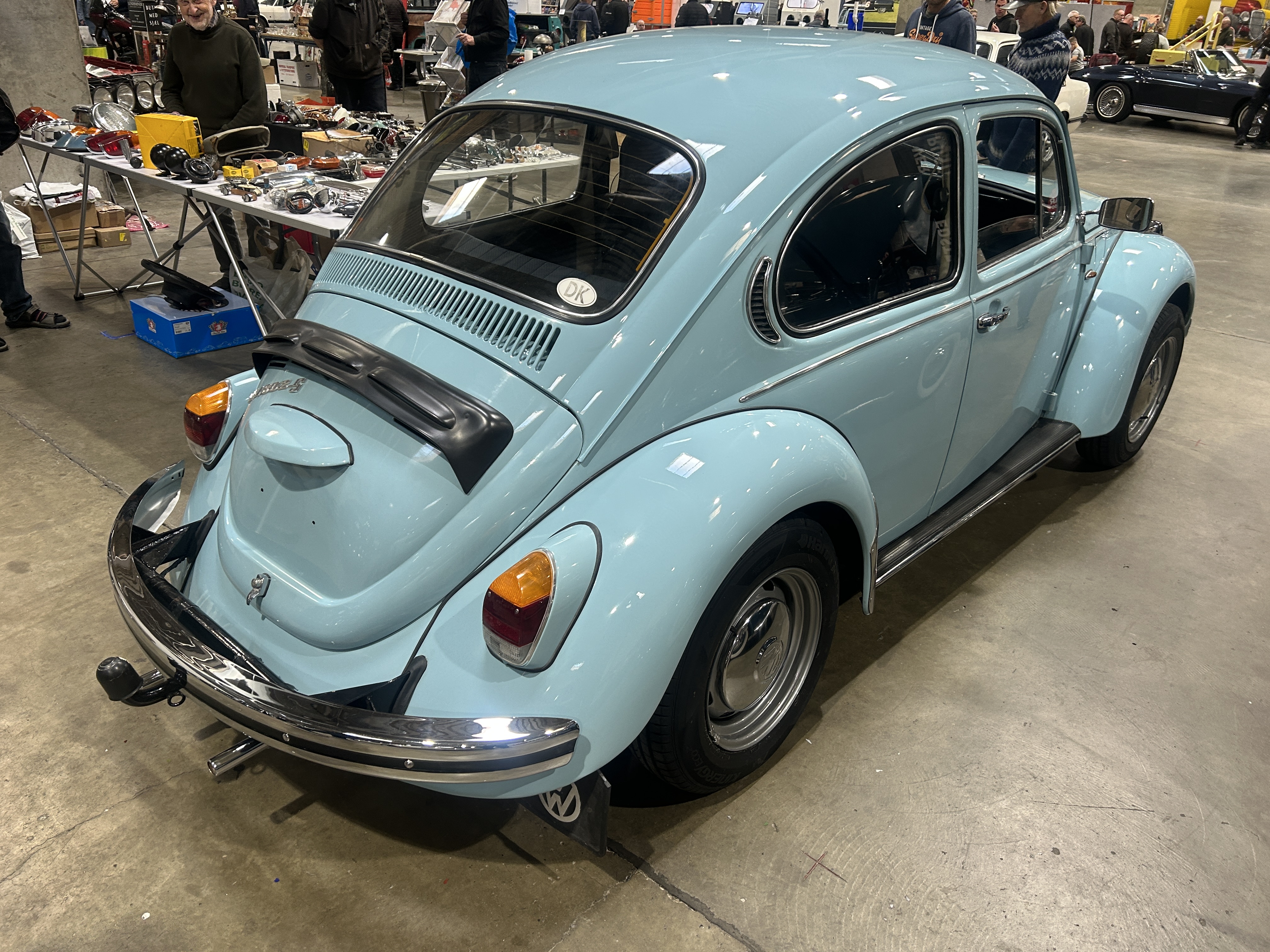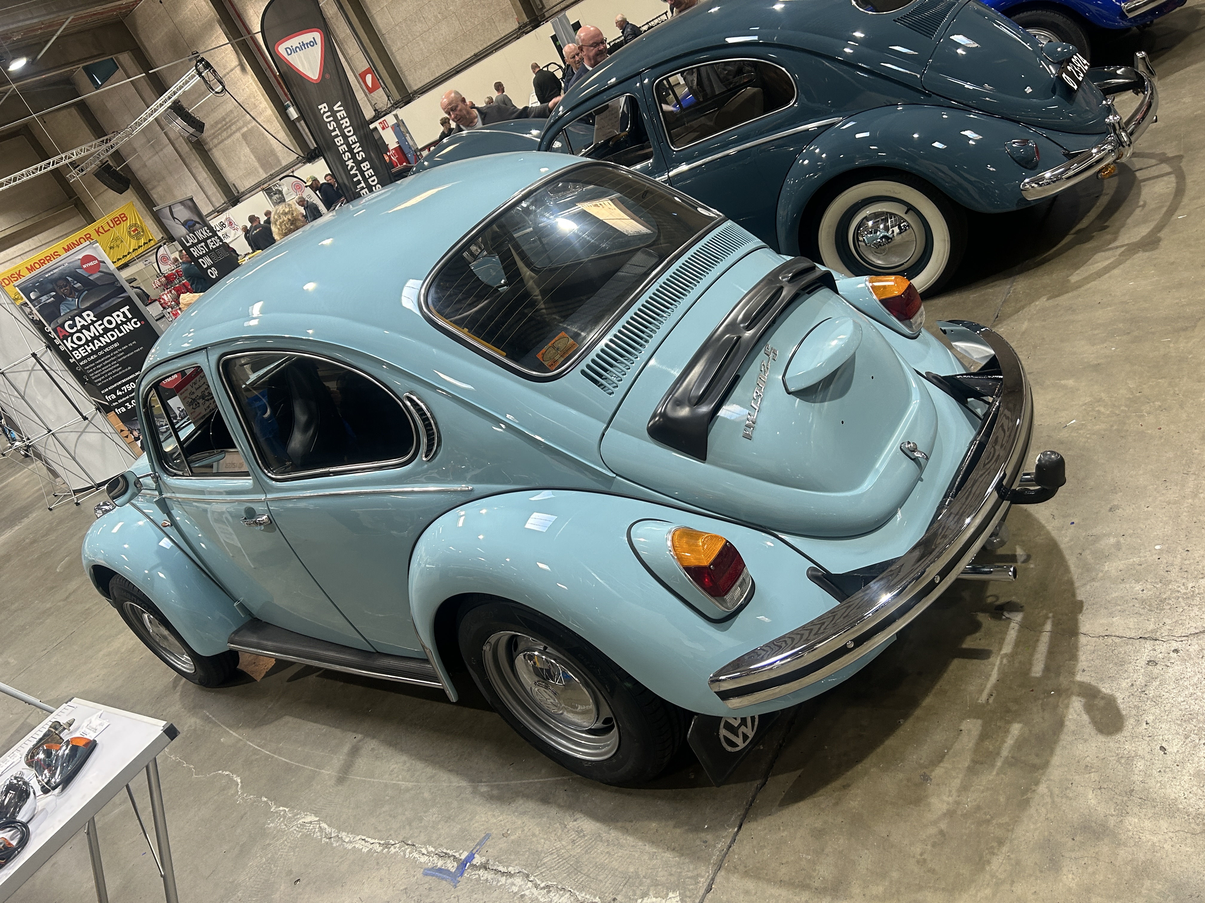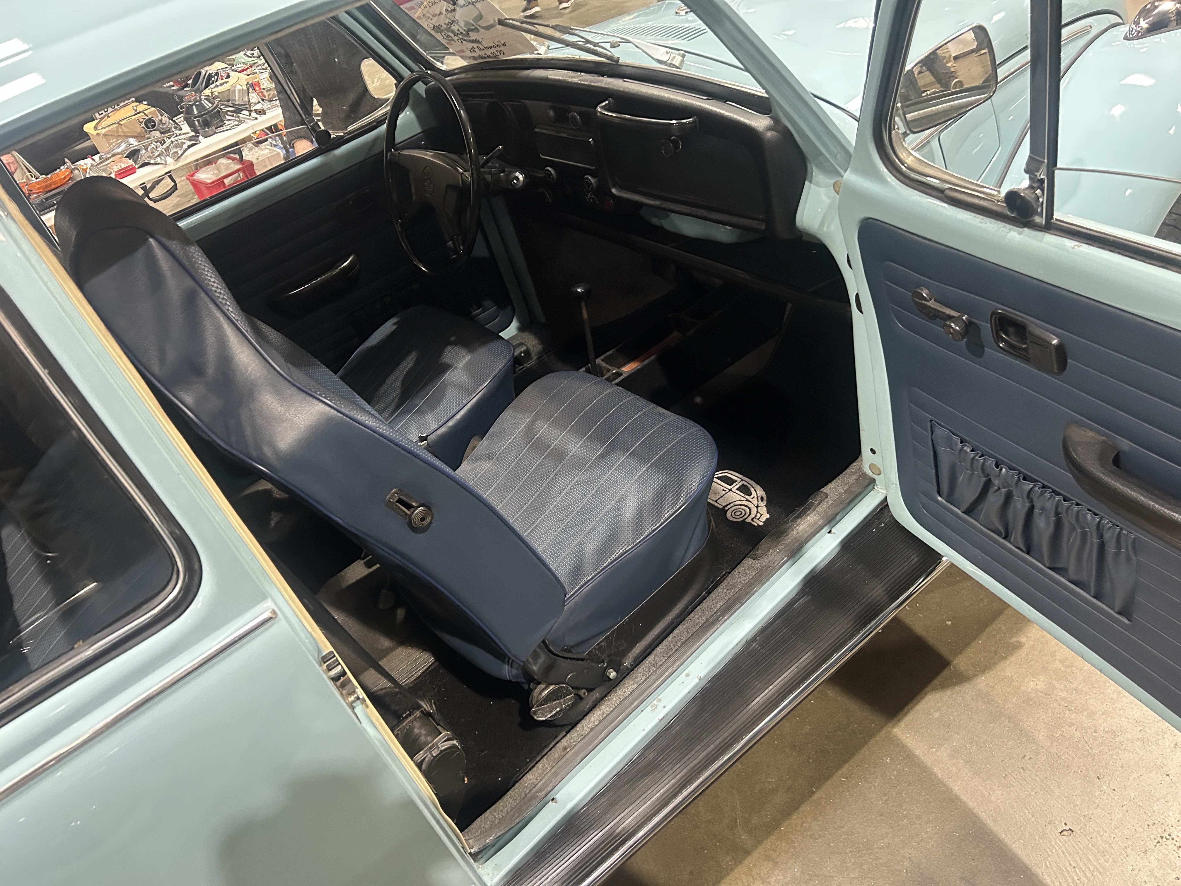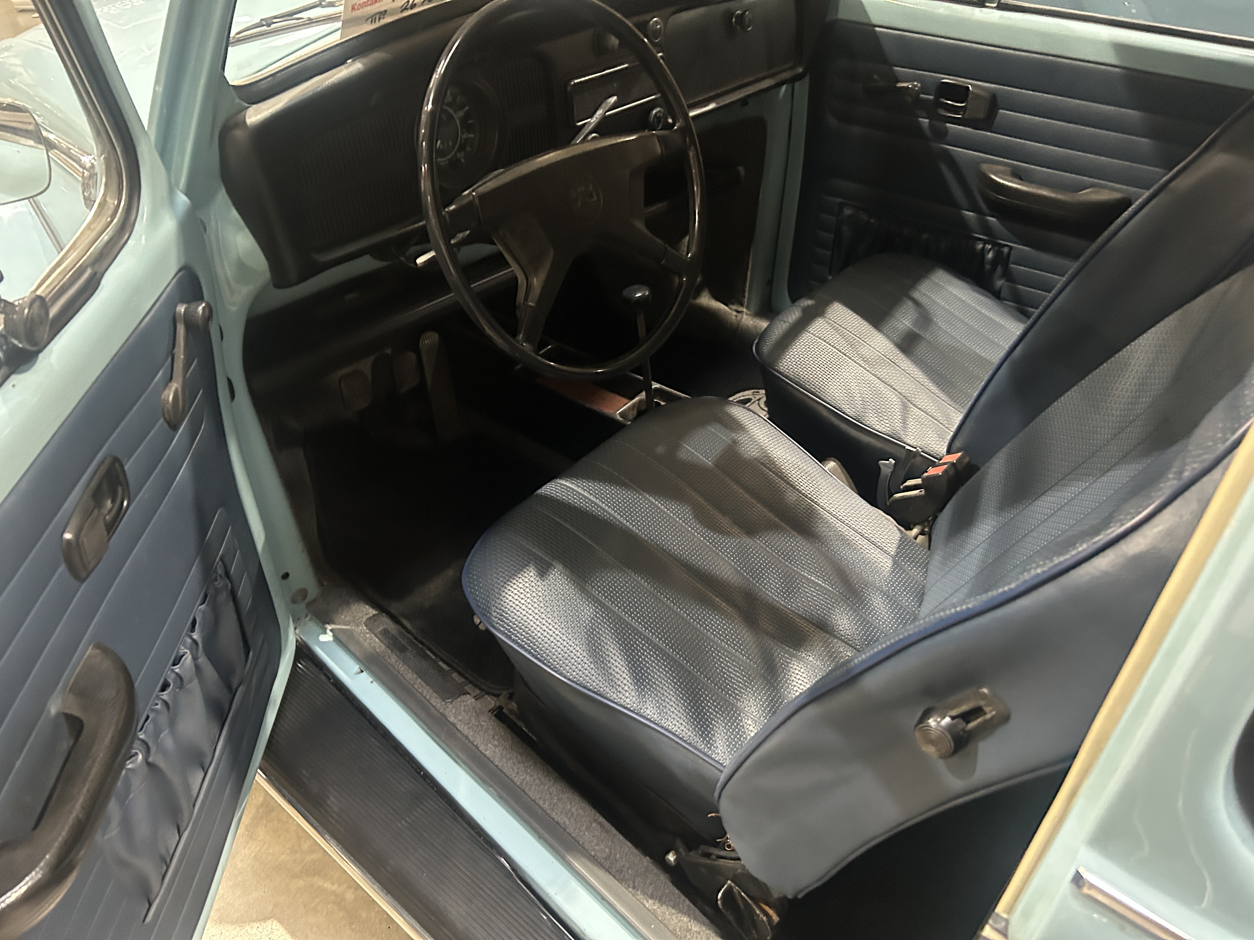 Vores bil er i meget fin stand, starter og kører perfekt, utrolig charmerende bil i den lyse blå originale farve og så er det modellen med højryggede forstole med nakkestøtter.