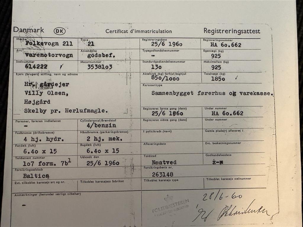 Er på sorte emlajeplader AB60266 og leveres nysynet med 8 år til næste syn (2034)